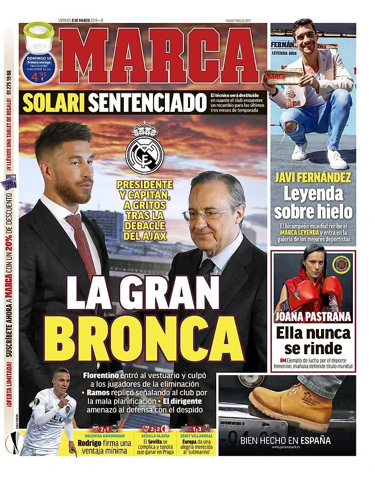 Сразу после вылета из Лиги чемпионов Флорентино Перес, как обычно, спустился в раздевалку команду, чтобы по горячим следам разобраться в причинах поражения и приободрить разочарованных игроков. Что-то пошло не так с самого начала, когда президент «Реала», не терпящий пререканий, у всех на глазах вынужден был вступить в словесную перепалку с Серхио Рамосом.