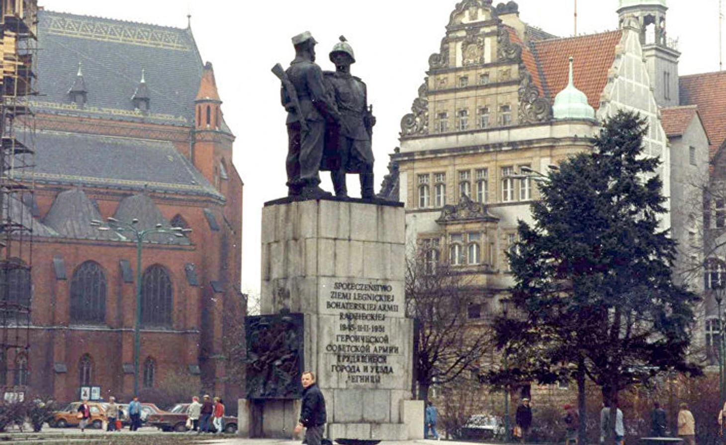 После Второй мировой войны советские военные штабы появились аж в 180 городах на территории Польши, но Легница, безусловно, стоит особняком, ведь именно там более 50 лет базировался крупный гарнизон советских войск: сначала это был штаб Северной Группы Войск СССР (с 1945 по 1984 год), а затем Главное командование войск Западного направления (1984-1991 г.). Последние русские солдаты покинули Легницу 16 сентября 1993 года, то есть более 25 лет назад, но "русский след" и память о наших согражданах тут ещё живет, хотя каждое следующее молодое поколение всеми силами стремится эту память и это прошлое стереть. Речь, в первую очередь, о памятнике Благодарности Красной армии, на котором польский и советский солдаты держат на руках ребенка. Он был открыт в 1951 году и до отбытия из Легницы наших последних солдат речи о его демонтаже, естественно, не возникало. Но с 1994 года ситуация резко изменилась и памятник пришлось даже брать под круглосуточную охрану согласно двустороннему договору Польши с Россией, который блокировал возможность избавиться от него. Но поколения менялись, недовольство населения росло, и памятник неоднократно подвергался осквернению вандалами. В конце концов в Польше был принят федеральный закон о декоммунизации, согласно которому местная власть в регионах должна была в кратчайшие сроки убрать коммунистические памятники. Таким образом, ровно год назад данный памятник в Легнице был демонтирован со Славянской площади, хотя, как показал общественный опрос, почти 80% жителей Легницы выступили против сноса монумента.