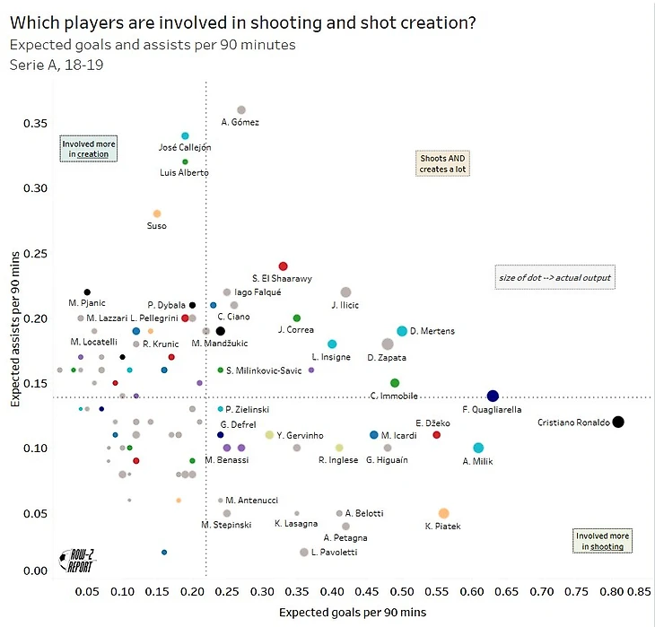 На графике вы видите ожидаемые голы и ожидаемые ассисты в Серии А.