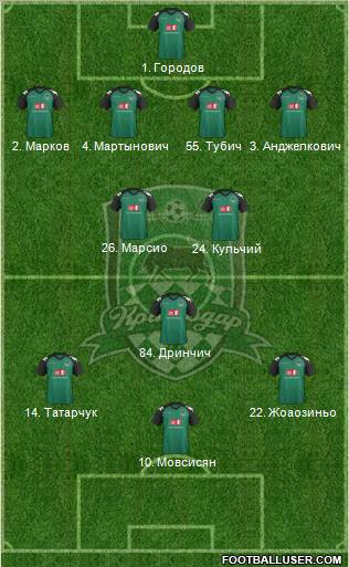 Пора поговорить о стартовых составах. "Краснодар" ударно провел летнюю селекцию и сейчас может позволить себе ротацию. Но на этот матч выйдут те, кто делал погоду в первом круге. Цепкий и моторный Марсио совместно с ветераном Кульчием и Дринчичем составят центральный треугольник, в защите дисквалифицированного Амисулашвили подменит Мартынович. Кудряшов по условиямм аренды принять участие в матче не сможет. Вместо Вранеша Марков - хорошая новость для Димы Комбарова. Босниец волею лимита останется на лавке.