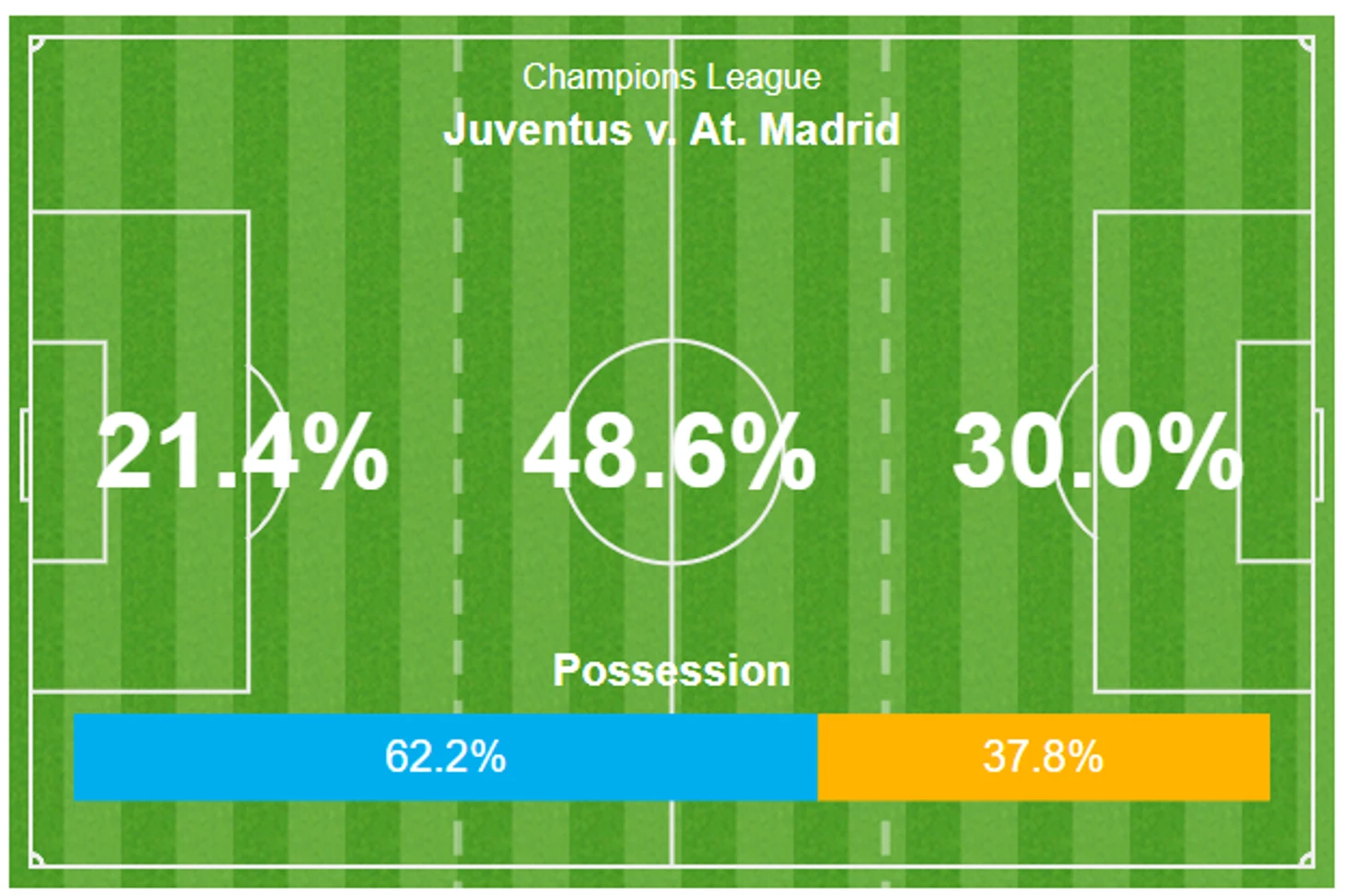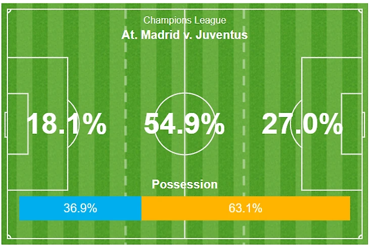 Разница с мадридским матчем показательна. Тогда «Юве» тоже много владел мячом, но «Атлетико» их контролировал – всего 18,1% действий на трети поля испанцев: