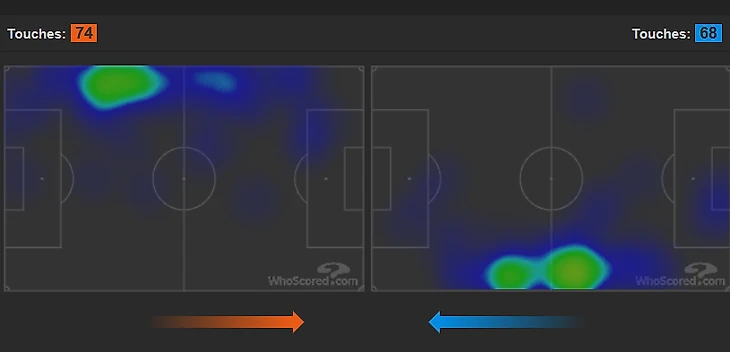 Крайки «Ливерпуля» действовали активнее, регулярно подключаясь к атакам. Про «мюнхенцев» нельзя сказать то же самое. На скрине 1 и 2 видно, что Робертсон и Трент располагаются выше и охватывают большее пространство. Исключением стал Алаба в первые 30 минут матча. Затем «Бавария» пропустила, и боязнь получить 2-й мяч в свои ворота сыграла свою роль.