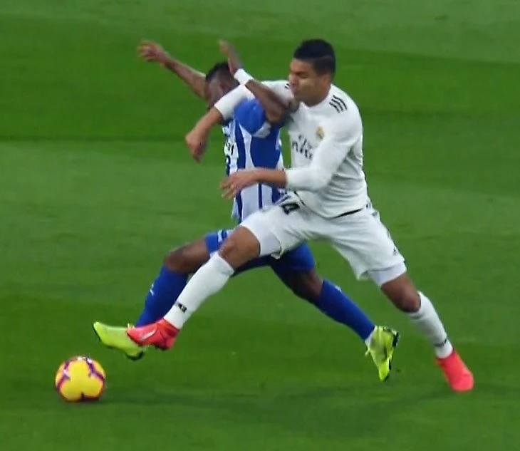 Карвахаль вообще этим часто промышляет, и это ему почему-то регулярно сходит с рук. Как вот здесь. Или вот тут. Это матчи с Валенсией и Бетисом сезона 16/17. Тогда ВАР не было, но в случае с Реалом это мало что меняет. А были еще 2 эпизода в 1/2 ЛЧ-2018 с Баварией. Тоже без фола, разумеется. Он всегда врезается одинаково, но никто не свистит. Хотя падение Бернардески с Атлетико или Васкеса и Крооса в прошлогодней ЛЧ произошли от куда меньшего воздействия, но там моментально указывали на точку. Очередной из бесконечных примеров двойных стандартов в футболе, когда дело касается Реала или команды Роналду.