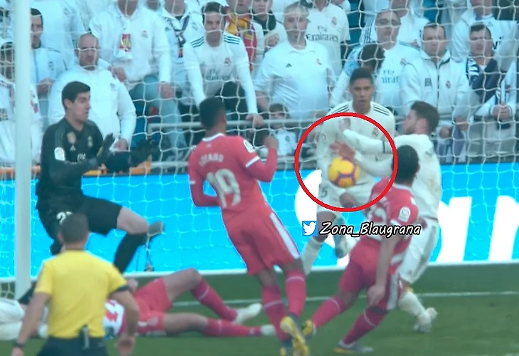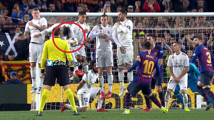 За точно такую же руку не поставили пенку ПСЖ в ЛЧ-2018. А вот в пользу Реала против Алавеса в сезоне16/17 за то же самое указали на точку, когда Бэйл пробил в руку игрока, стоящего в стенке. Какой там уже по счету случай двойных стандартов применительно к королевскому клубу?