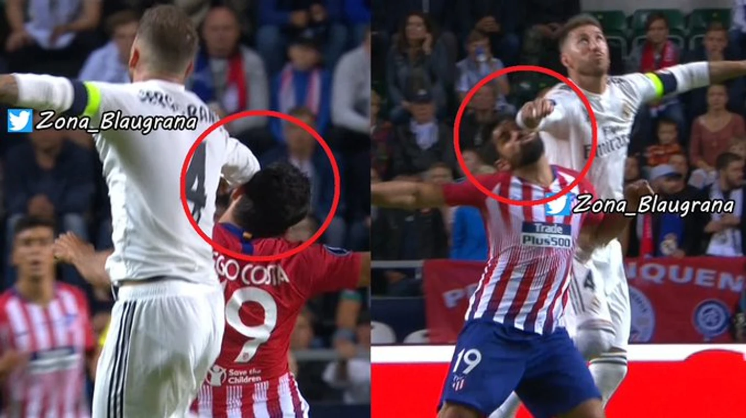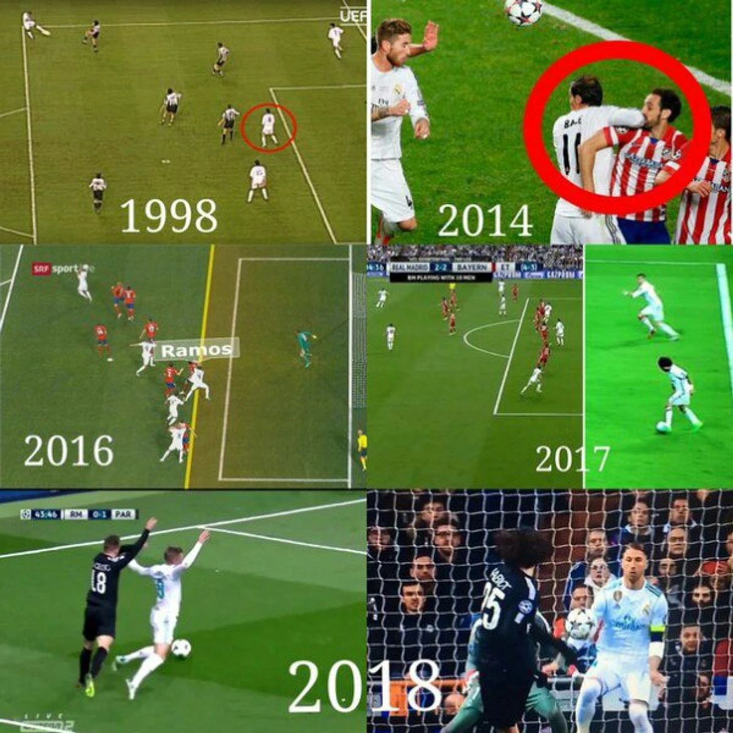 1-й гол, Рамос сначала толкает Лукаса, а потом тычет ему локтем в голову. Лукас падает - ноль внимания. Ничего удивительного: Сережа почти все верховые борется именно так. Разумеется, никто и никогда не фиксирует фолов. Снова вспомните отмененный гол Мораты для сравнения.
