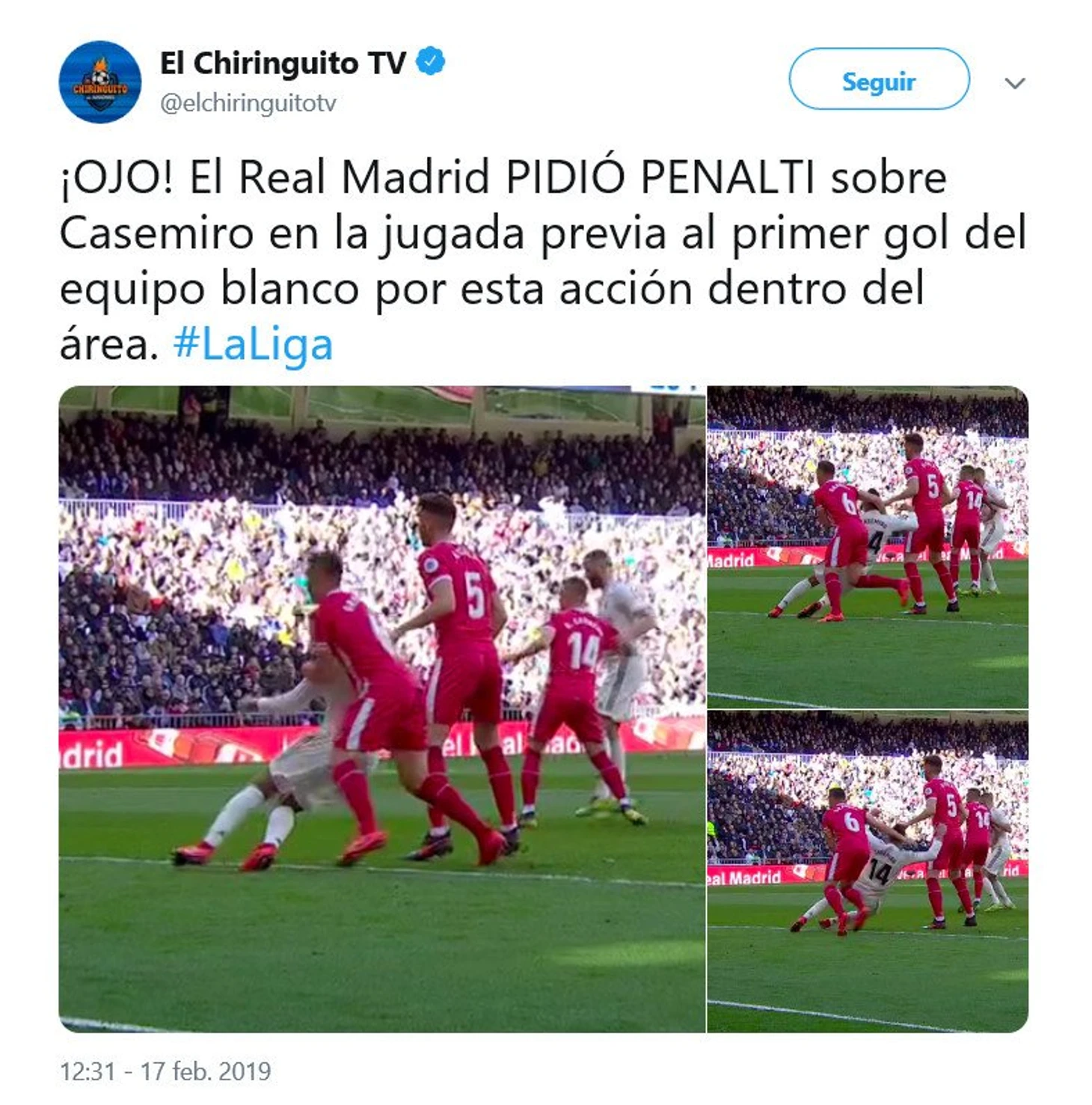 - Иглесиас Вильянуэва, ранее неоднократно замеченный в жесточайшем подсуживании Мадриду (см. видео, к-е многое объясняет), назначил в ворота Вальядолида одну из самых идиотских пенок за последние годы. Защитник Леванте Дукуре махнул ногой мимо Каземиро, траектория его движения никак не пересекалась с ближней ногой бразильца. Но мадридист, почувствовав сильнейшее дуновение ветра от взмаха, отталкивается с ДАЛЬНЕЙ ноги на метр (вот этот момент), группируется, падает и корчится от боли. А пока арбитр смотрит ВАР, лежит и улыбается. Дешевый цирк, мерзкий спектакль - как еще это назвать? Парень изображает адские муки, выпрашивая пенальти, хотя там даже мимолетного контакта не было (впрочем, мадридисты свято уверены в обратном, что лишний раз подтверждает их слабое зрение). А вы говорите, Суарес... Кстати, это далеко не первый случай, когда Каземиро сдувает ветром. Редкая смесь дикого костолома и гадкого симулянта. С ним в этом плане могут посостязаться только Пепе и Рамос - другие легенды Реала, знающие как одновременно калечить людей и кататься по газону после невидимого воздействия. Смотрите еще один повтор: у Каземиро даже гетры не помялись.