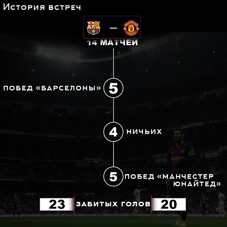 В 1984 году каталонцы у себя дома обыграли "Ман Юнайтед" в Кубке обладателей кубков (2:0) – это была первая встреча этих команд. Правда, в ответной игре англичане совершили камбэк (3:0). В Лиге чемпионов между собой сыграли восемь матчей. И из этих восьми матчей было два финала, в которых испанцы увозили трофей с собой. Кстати, Месси забивал в этих финалах. Последний раз играли в июле 2017 на Международном кубке чемпионов в США и там была победа «Барсы» (1:0).