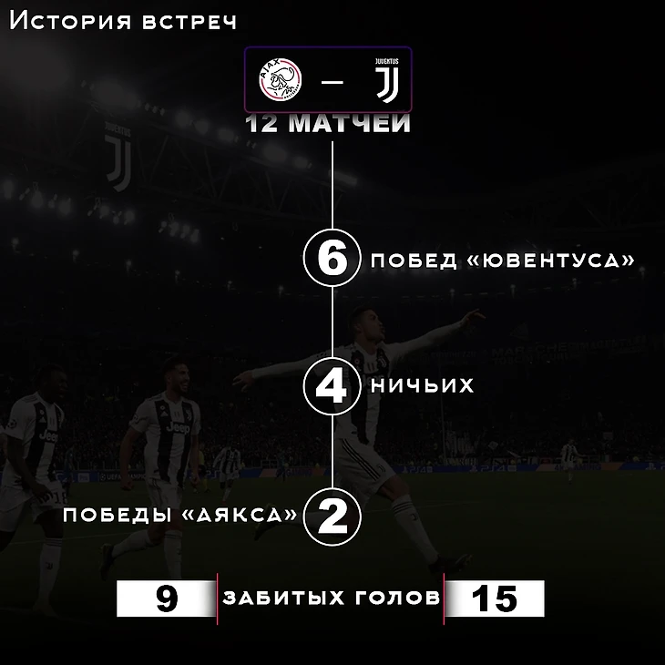 Не так уж и много личных противостояних у этих команд, но зато своё начало они берут с финала Лиги чемпионов 1973 года. 5 мая на стадионе «Црвена Звезда» голландский «Аякс» в финале Кубка европейских чемпионов обыгрывает «Ювентус» со счётом 1:0. Спустя 23 года очередной финал ЛЧ. Тогда уже, в мае 1996, «старая синьора» лишь в серии послематчевых пенальти смогла обыграть коллектив из Амстердама. Восемь – именно столько раз команды играли друг против друга в Лиге чемпионов.