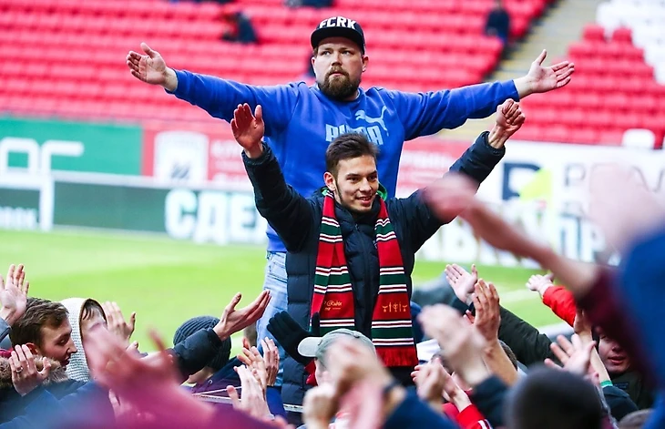 «Рубин» продолжает развивать тему «Ребята с нашего двора». Молодой воспитанник Артур Сагитов принял приглашение фанатов и посетил вышку заряжающего на матче против «Ростова»