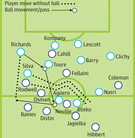 Дэвид Плит рассуждает о прошедшем поединке на Этихад Стэдиум, а именно о противостоянии Джека Родуэлла и Давида Сильвы: «Полузащитник «Эвертона», применяя строжайшую дисциплину, концентрацию внимания и усердие изо всех сил пытался помешать Давиду Сильве показать все, на что тот способен. В течение длительного времени ему удавалось сдерживать ключевого игрока хозяев в полузащите, перемещавшегося по всему полю в поисках мяча. Однако, неожиданный выстрел Марио Балотелли поменял игровой рисунок Мойеса, а потом мы увидели, как может молниеносно меняться менталитет ведения игры. «Эвертон» был вынужден освобождать зоны ждля проходов испанца Сильвы, который, оставшийся без пристального внимания Родуэлла, сумел поразить ворота, правда, не по правилам. Дальше больше - опять Сильва, снова обнаруживший себя без опеки, отдал разрезающий пас на Джеймса Милнера с прицелом на то, что тому удастся поставить жирную точку в этом противостоянии».