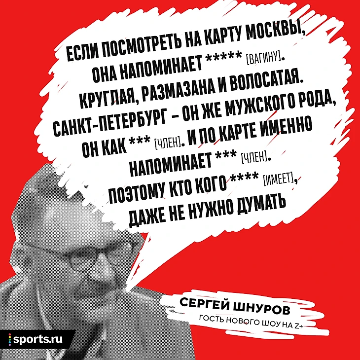 Но это только введение, главный аргумент звучал пугающе: «Если посмотреть на карту Москвы, она напоминает, даже человеку без сексуального воспитания, – ***** [вагину]. Круглая, размазана и волосатая. Санкт-Петербург, он же мужского рода, он как *** [член]. И по карте именно напоминает *** [член]. Поэтому кто кого **** [имеет] даже не нужно думать. Петербург – самый ****** [пенисный] город в прямом смысле».