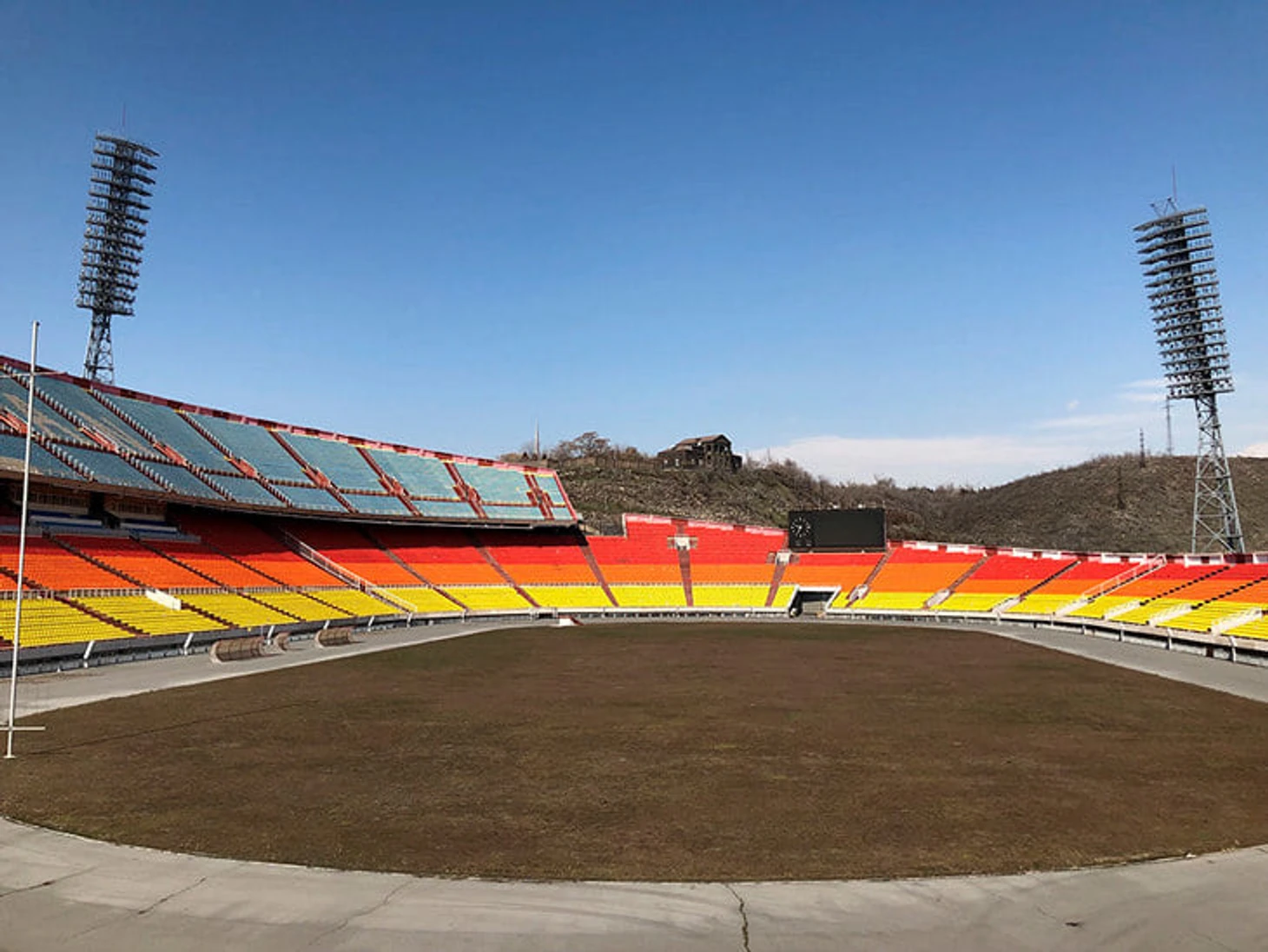 «Раздан» построили всего за 19 месяцев. Сейчас сложно поверить в такие темпы: решение о стадионе приняли в 1968-м, а открывать были готовы уже в ноябре 1970-го. В Армении тогда как раз находился генсек ЦК КПСС Леонид Брежнев, который собирался провести церемонию. Все пошло не по плану: в Ереване повалил жуткий снег, поэтому открытие перенесли на май – на матч с «Кайратом». В конце игры болельщики жгли газеты, а стадион напоминал огромную горящую чашу – файер-шоу из Советского Союза.