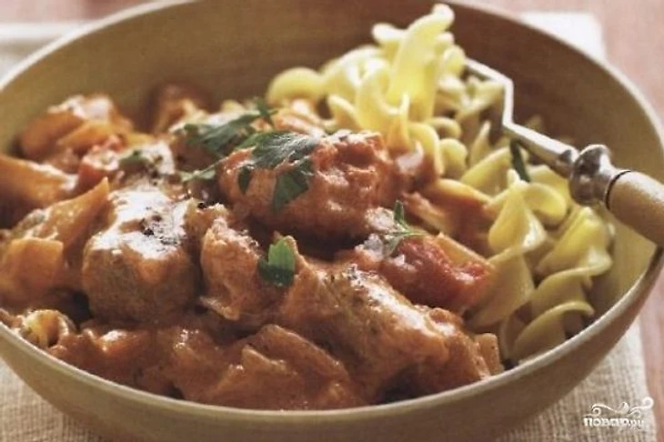 А за нас сегодня играют для приготовления нашего изыска нам понадобится: Московский "СпОртак" - 1 штука, Луковица - 1 штука, Чеснок - 2 зубчика, Мясо (азаза) - 800 грамм, Растительное масло - 3 столовые ложки, Томатная паста - 3 столовые ложки, Масло сливочное - 50 грамм, Мука - 1 столовая ложка, Макароши - на глаз, вода, соль/перец.