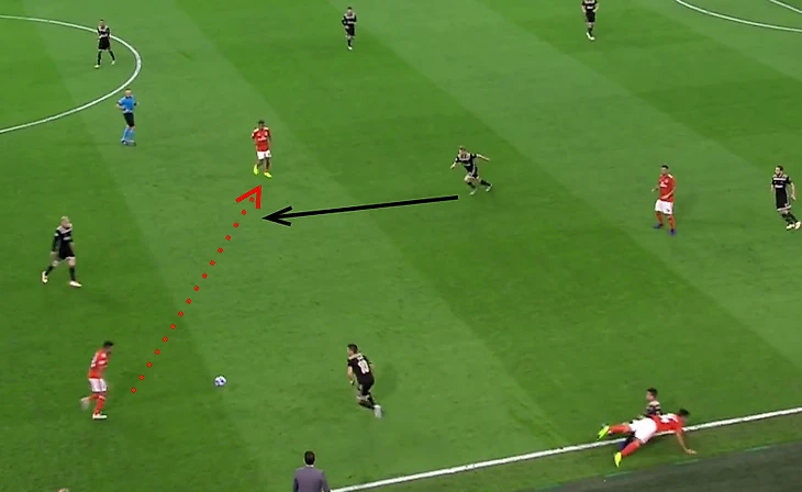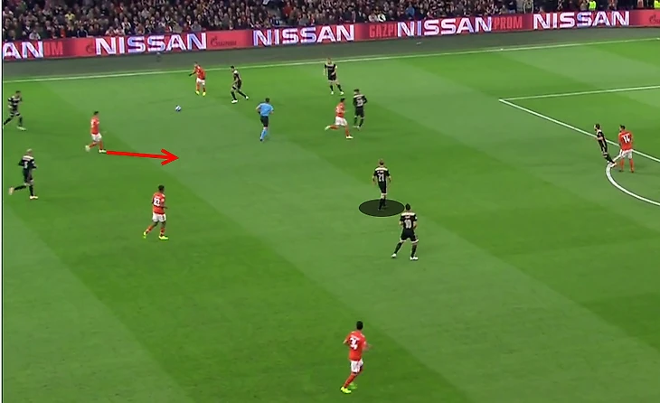 Однако есть в атакующих действиях юного вундеркинда и определённые недостатки. Пример из матча с Бенфикой: