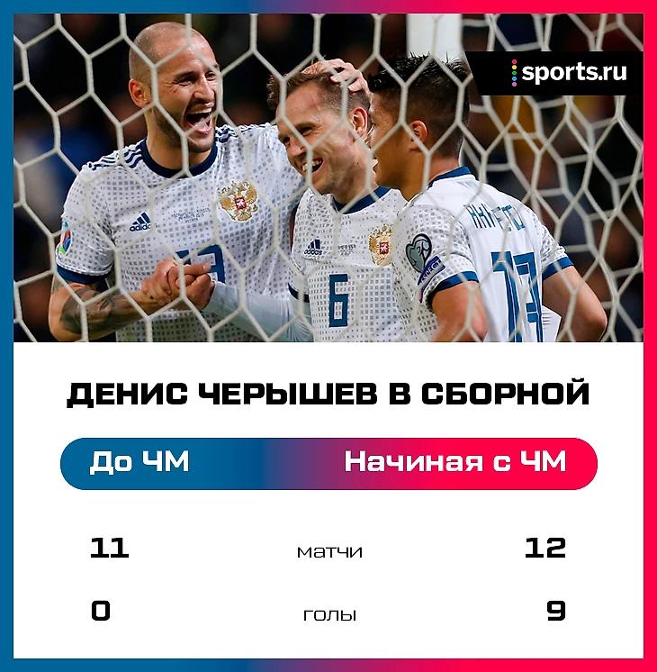 На ЧМ Черышев потом забил еще два (Египту и Хорватии) и стал лучшим бомбардиром сборной на турнире.