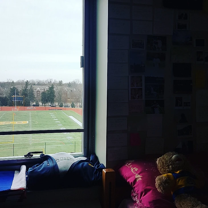 Короче говоря, в университет я поступила на полную стипендию. И комнату мне дали в общаге, которая смотрит на футбольное поле, «чтобы я всегда могла на своих мальчиков смотреть, даже когда на стадион идти возможности нет».