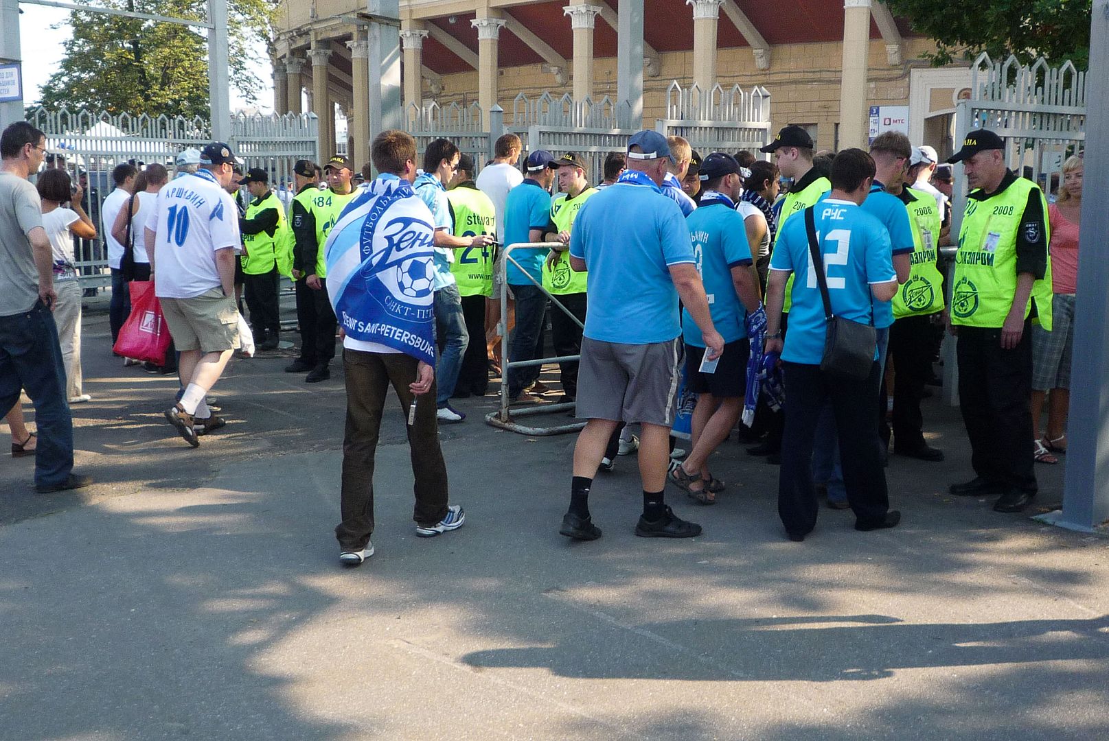 Кстати, Санкт-Петербург, как самый ориентированный на Европу город страны, впервые перешел на систему стюардов. Бойцов всякого рода спец.служб на стадионе не было практически совсем. Перед каждым сектором стояли специально обученные люди с надписями «Steward», подобно тому, как это делается в Англии. Это был первый опыт города и России вообще, и в целом он удался.