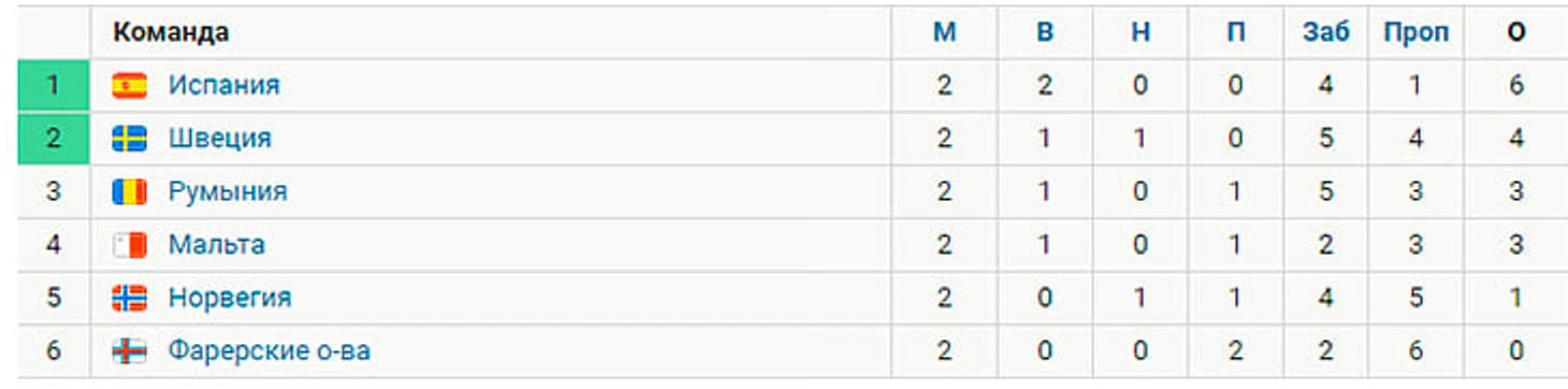 Ситуация в группе предельно сложная: два первых матча отбора выиграла только Испания, у шведов 4 очка, за ними идут Румыния и Мальта – у них по победе. Норвегия пятая, но она сыграла матчи с самыми сильными соперниками (на прошлой неделе проиграли Испании 1:2). Группа F будет очень интересной.
