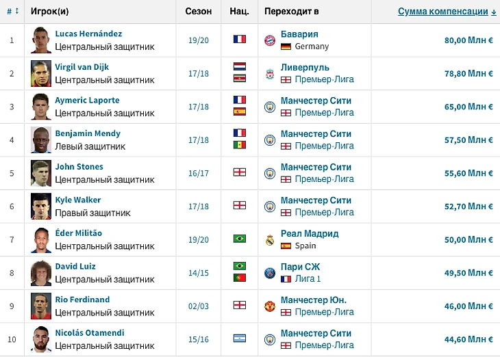 Правда вот что интересно, по информации все того же портала Transfermarkt, на данным момент, Люка Эрнандес является самым дорогим защитником в мире: