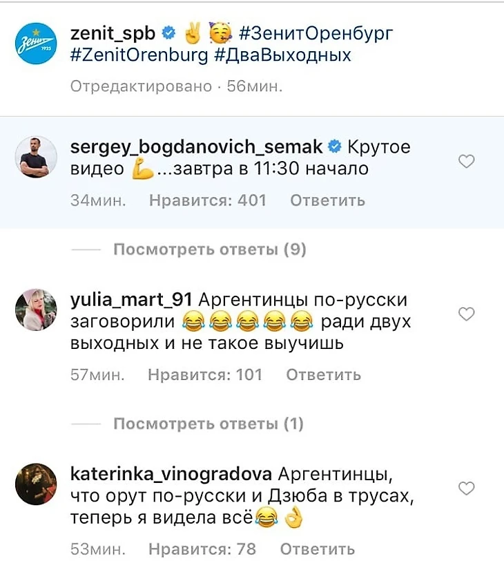 Семак шикарно прокомментировал пост: «Крутое видео... Завтра в 11:30 начало».