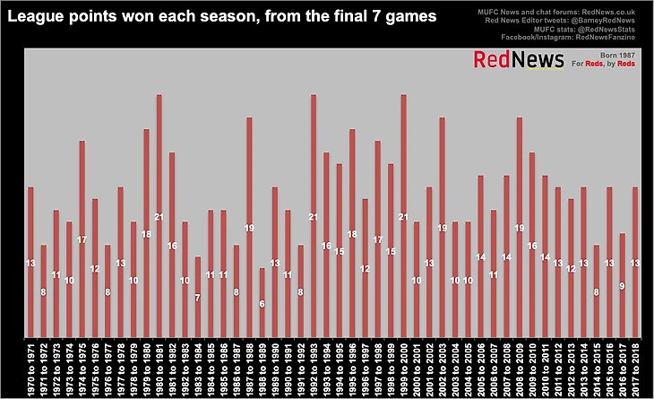 Статистика набранных «МЮ» очков в последних 7 матчах сезона