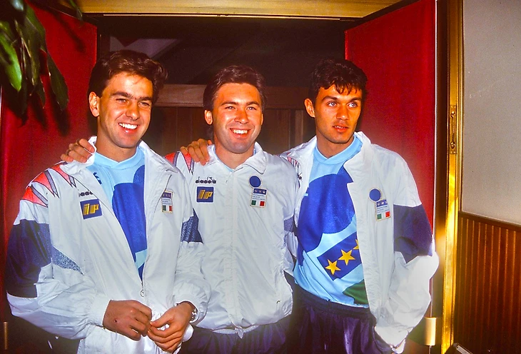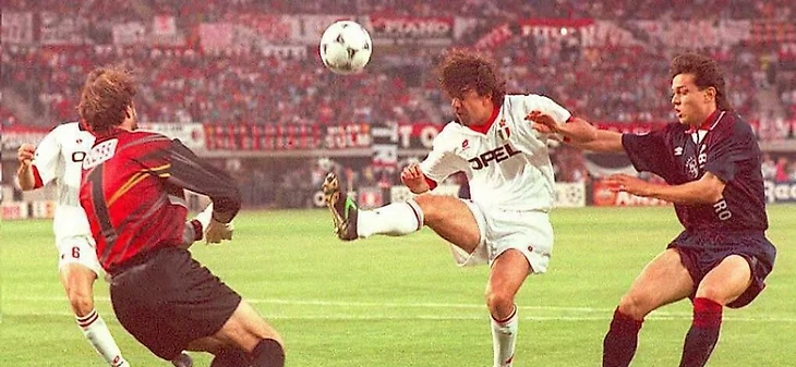 В 1994 году ничья с бело-чёрными принесла "Милану" досрочную викторию в чемпионате, линия обороны команды Фабио Капелло выглядела классически: Франко Барези, Мауро Тассотти, Паоло Мальдини, Костакурта.