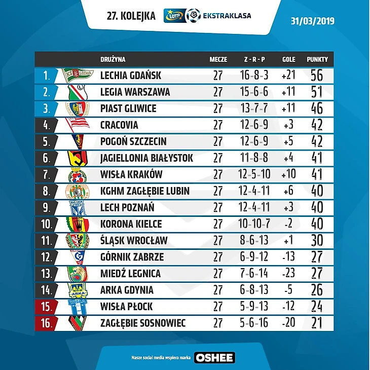 Фото: ekstraklasa.org, zaglebie.com, gornikzabrze.pl, lechia.pl, miedzlegnica.eu, arka.gdynia.pl, korona-kielce.pl, pogonszczecin.pl, wisla.krakow.pl