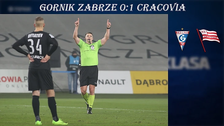 «Гурник», пополнившийся опытными футболистами зимой и как результат обретший второй дыхание, принимал «Краковию», которая после провального начала чемпионата уже ввязалась в борьбу за еврокубки. В отличие от игры в Плоцке в этом матче болельщикам не пришлось долго ждать опасных моментов. Уже на 8-ой минуте Диего Феррарессо нанес мощный удар, однако мяч пролетел над перекладиной. Ответ забжан тремя минутами спустя вышел куда опаснее. Хименез вышел один на один с Песковичем и перебросил словацкого кипера, но в створ ворот форвард хозяев не попал. Команды, как шахматисты, атаковали по очереди. Наступил черед гостей, подачу Гола продлил Пищек, а Кабрера с близкого расстояния поразил ворота Худого, хозяевам не помог даже VAR, который только подтвердил правильность решения арбитра. По истечении получаса игры провалился центр обороны «Краксы», чем воспользовался Ангуло, вышедший один на один с Песковичем, но и второму забжанскому испанцу не улыбнулась удача, на этот раз удар на себя приняла стойка ворот. Ближе к перерыву в дело пошли стандартные положения. Одно из них завершилось ударом Бориса Секулича, который в прошлом туре уже отмечался забитым мячом в ворота познаньского «Леха». На перерыв команды ушли при равной игре, но с преимуществом гостей. Во втором тайме тренер хозяев пошел ва-банк, на поле вышел Вольштыньски, став третьим номинальным нападающим на поле. Во втором тайме забжане контролировали мяч, но до реальной опасности у ворот гостей доходило редко. Одно из наступлений завершилось борьбой Секулича и Гол, которое привело к падению серба в штрафной гостей. Арбитр указал на точку в штрафной Песковича, однако после просмотра повтора отменил свое решение, хотя, кажется, что у Войцеха Мыца были все основания оставить решение в силе. Чуть позже Шимон Журковски попытался уже сам заработать одиннадцатиметровый. У будущего полузащитника «Фиорентины» получилось это сделать, но через несколько минут стадион снова недовольно загудел и высказал свое мнение относительно введения VARа. Самый же реальный шанс упустил Вольштыньски, который, правда, не сумел подстроиться под мяч и пробил слабо по воротам «полосатых». «Краковия» одерживает побеждает при равной игре и сокращает отставание от третьей строчки, дающей путевку в Лигу Европы.