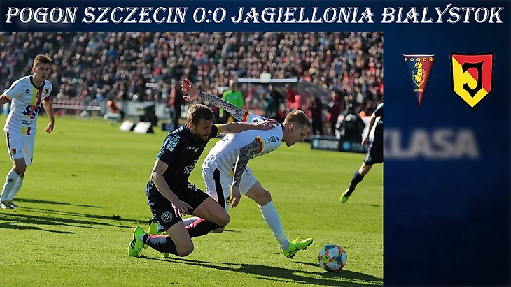 Хотя «Погонь» и «Ягеллония» являются соседями по турнирной таблице к очному противостоянию они подходили в разном настроении. Щецинцы стабильно набирают очки и держатся в районе 5-6 места, а вот белосточчане никак не могут выйти из кризиса, который в ближайшее время может привести в отставке Ирениуша Мамрота. Для «Погони» этот матч был первым на полуразобранном стадионе. Игра началась спокойно, никто не бежал вперед, щецинцы забрали себе мяч, но сильного давления на ворота Келемена не оказывали. Тяжелой для «Яги» выдалась середина первой половины встречи. Сначала после подачи с фланга головой пробивал Дрыгас, бьющий все свои индивидуальные рекорды в нынешнем сезоне. Затем прямым ударом со штрафного ответил Кожуль, но Келемен был готов к такому развитию событий. А закончил ударный отрезок «сине-бордовых» Матыня, мощно пробивший из-за пределов штрафной. До перерыва счет команды так и не сумели открыть, а хлопот Мамроту добавили две травмы. Сначала вместо получившего повреждение Клималы пришлось выпускать Сцеповича, а в самой концовке первого тайма уже и сербу понадобилась медицинская помощь и газон он смог покинуть только на носилках. Второй тайм был схож по сценарию со своим предшественником. Снова команды не форсировали события, словно пытались выманить один другого большими силами на свою половину поля. В середине второй половины игры уже гости сподобились на опасный удар со штрафного. Гильерме пробил в ближнюю девятку, однако Залуска был на чеку. У хозяев на поле во втором тайме вышел Беньямина, заменивший Буксу, который провел своей далеко не лучший матч. Немецкий форвард в оставшиеся минуты был самым активным у хозяев, нанеся два опасных удара по воротам «пчелок», однако в одном случае здорово сыграл голкипер гостей, а во втором - мяч пролетел выше ворот. Пришлось Ирениушу Мамроту делать и третью вынужденную замену. Повреждение получил голкипер гостей Келемен, которого заменил Сандомерски. Именно Сандомерски на 88-ой минуте чуть было не отбил удар Жиро в собственные ворота, но голкипер быстро сориентировался и забрал мяч. «Погонь» и «Ягеллония» делят очки в игре, где, наверное, никто не заслужит победы, хотя опаснее местами выглядели хозяева. Одно можно сказать точно, ничья эта вряд ли кого-то устроила.