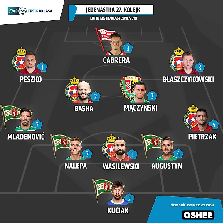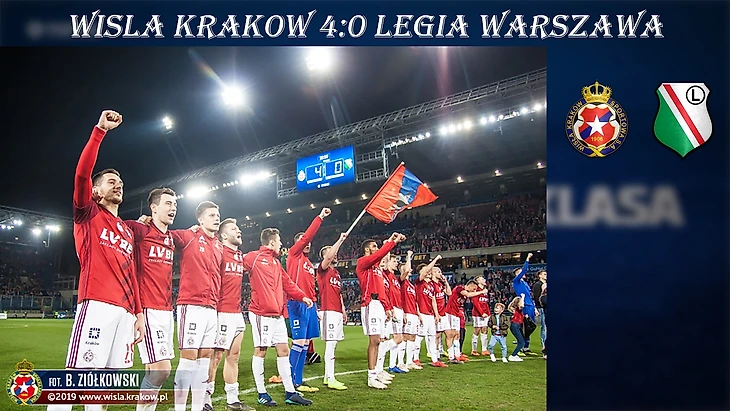 Завершался 27-ой тур центральным матчем, в польской классике сошлись «Висла» и «Легия». Краковчане благодаря характеру своих футболистов неожиданно вклинились в борьбу за первую восьмерку, варшавяне же продолжают погоню за лидером чемпионата из Гданьска, поэтому во вторую столицу Польши «легионисты» приехали только за победой. Уже на 4-ой минуте Петшак чуть было не обрезал всю свою команду поперечной передачей, однако пас дошел до адресата, атака стремительно развивалась правым флангом, а завершилась она прострелом Кубы Блащиковского в штрафную на Кшиштофа Джазгу. Удар форварда «Вислы» Цежняк парировал, а вот с добиванием Славомира Пешко ничего поделать уже не сумел. «Висла» сумела быстро открыть счет в польской классике. «Легия» довольно быстро пришла в себя, но сконструировать вразумительный ответ у варшавян не получалось. Под огромным давлением играл Карлитос, который проводил первый матч на этом стадионе после ухода из стана «белой звезды», каждое касание мяча испанцем стадион сопровождал оглушительным свистом. Но не испанец, а португалец мог сравнять счет. Техничный Медейрос пытался закрутить мяч в дальний угол ворот Лиса, но его подвела точность. А в середине первого тайма уже Карлитос пробил по воротам Лиса после ошибки одного из игроков в красной футболке, но снова Матеуш переиграл своего противника. Краковчане не отсиживались в обороне и пытались увеличить свое преимущество. В дело пошли стандарты. Так, после одного из розыгрышей угловых дальним пушечным выстрелом отметился Садлок, однако Цежняк отбил мяч, летевший прямо в него. Следующий угловой был еще опаснее. Антолич пытался так выбить мяч за пределы поля, что чуть было не отправил снаряд аккурат под перекладину собственных ворот. А на 39-ой минуте Роха допустил непростительную ошибку. Вместо того, чтобы убрать руку с пути летящего мяча, португалец убрал голову, а вот рукой как раз и сыграл. Арбитр моментально указал на точку. К мячу подошел Якуб Блащиковски и уверенно реализовал пенальти. Для «Легии» запахло жареным, Са Пинту решился на замену еще до перерыва, выпустив на поле второго нападающего Куленовича вместо защитника Столярского. Во втором тайме во многом именно Куленович выступал в роли наконечника атак, но ветеран хозяев Василевски раз за разом бросался под мяч, блокируя удары варшавян. А вот коллега по оборонительной линии Василевского Рафал Петшак допустил несколько ошибок. Зато на 73-ей минуте он за все свои ошибки извинился великолепным ударом со штрафного - Цежняк даже не шелохнулся. Гости пытались забить для начала хотя бы гол престижа, но вместо этого получали быстрые контратаки. И если Пешко свой шанс не реализовал, то Колар довел счет уже до совсем неприличного. «Висла» громит «Легию» и одерживает третью победу подряд с общим счетом 13:4, что позволяет «белой звезде» забраться в верхнюю восьмерку. «Легия» же вновь отпускает гданьчан на расстояние пяти очков. А в понедельник стало известно, что Рикарду Са Пинту уволен из варшавской «Легии», разгром в Кракове ему уже не простили.