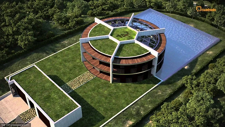 Слышали, что у Лео дом в форме футбольного мяча и выглядит как-то так.