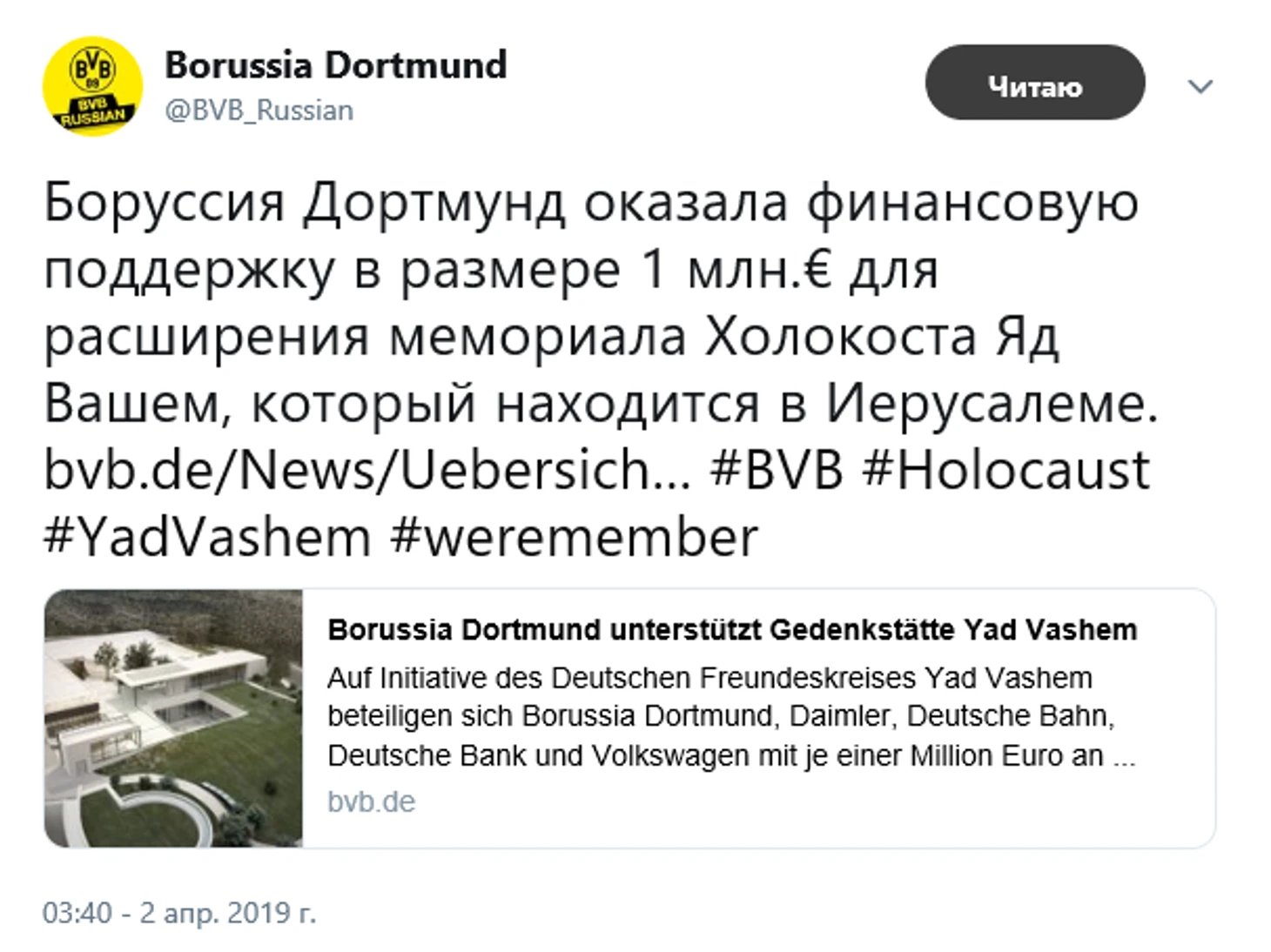 «Боруссия» Дортмунд ко дню памяти в немецком футболе выпустили видео, посвященное Холокосту.