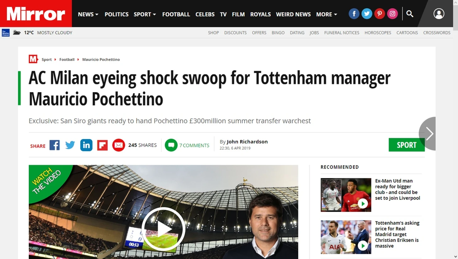 Источник: https://www.mirror.co.uk/sport/football/news/ac-milan-eyeing-shock-swoop-14246766