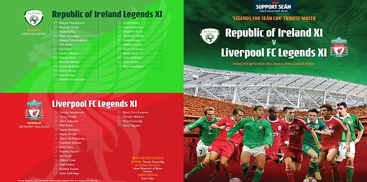 Игра состоится на стадионе «Авива» в Дублине в пятницу, 12 апреля. В ней примут участие легенды «Ливерпуля» и легенды сборной Ирландии.