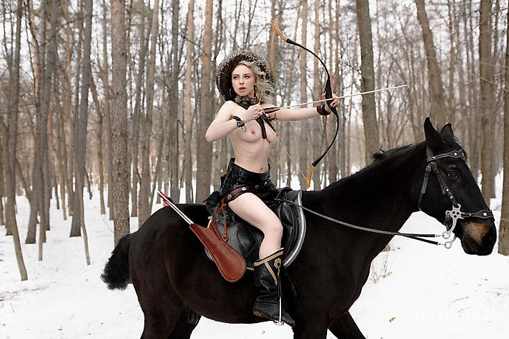 – Довольно долго. Два часа фотографировалась с конем, потом еще минут 40 делали портретные фотографии с луком. Благо, иммунитет у меня хороший, я не заболела.