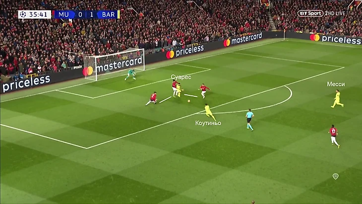 «МЮ» персональными ориентировками перекрывал Тер Стегену все варианты. Почти каждый такой эпизод завершался дальним пасом – мини-победа «МЮ». Риски все равно оставались: три защитника против Месси, Суареса и Коутиньо. В случае ошибки или проигранной борьбы начинались проблемы:
