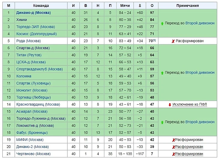 Итоговая таблица третьей зоны первенства России в третьей лиге-1997