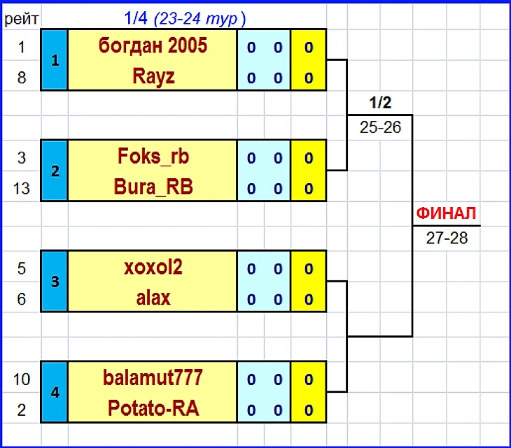 В матчах 1/4 финала встречаются: