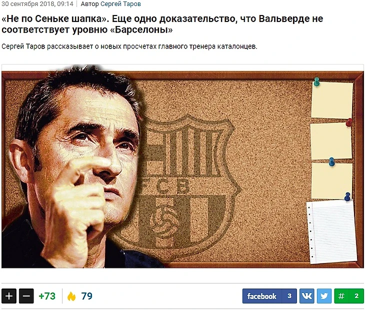 «Не по Сеньке шапка». Еще одно доказательство, что Вальверде не соответствует уровню «Барселоны»