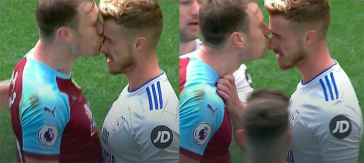 Игрок «Бернли» погасил стычку парой поцелуев. И получил карточку