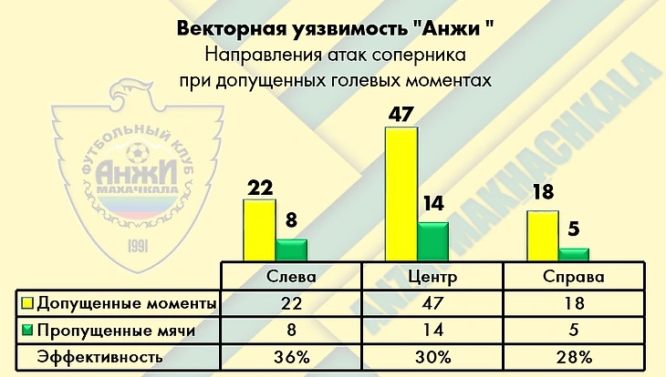 «Анжи» вообще очень неплохо обороняется позиционно в низком блоке (исключение – недавний матч с «Краснодаром», который трижды забил именно в статике и разбазарил еще ворох моментов), но при этом много пропускает в контратаках (зачастую после неудачно разыгранных стандартов) и проваленных попыток высокого прессинга.