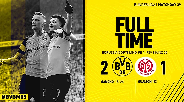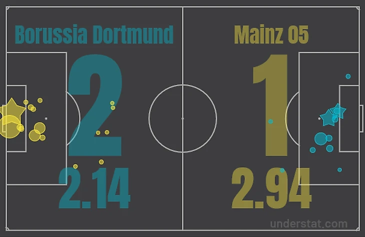 Весь этот матч вытащил Роман Бюрки и Джейдон Санчо (2 гола и 2 почти голевые передачи). Ну а «Майнц»? «Майнцу» просто не повезло. Первый тайм можно занести в актив «шмелям». Во втором хороши были «карнавальщики».