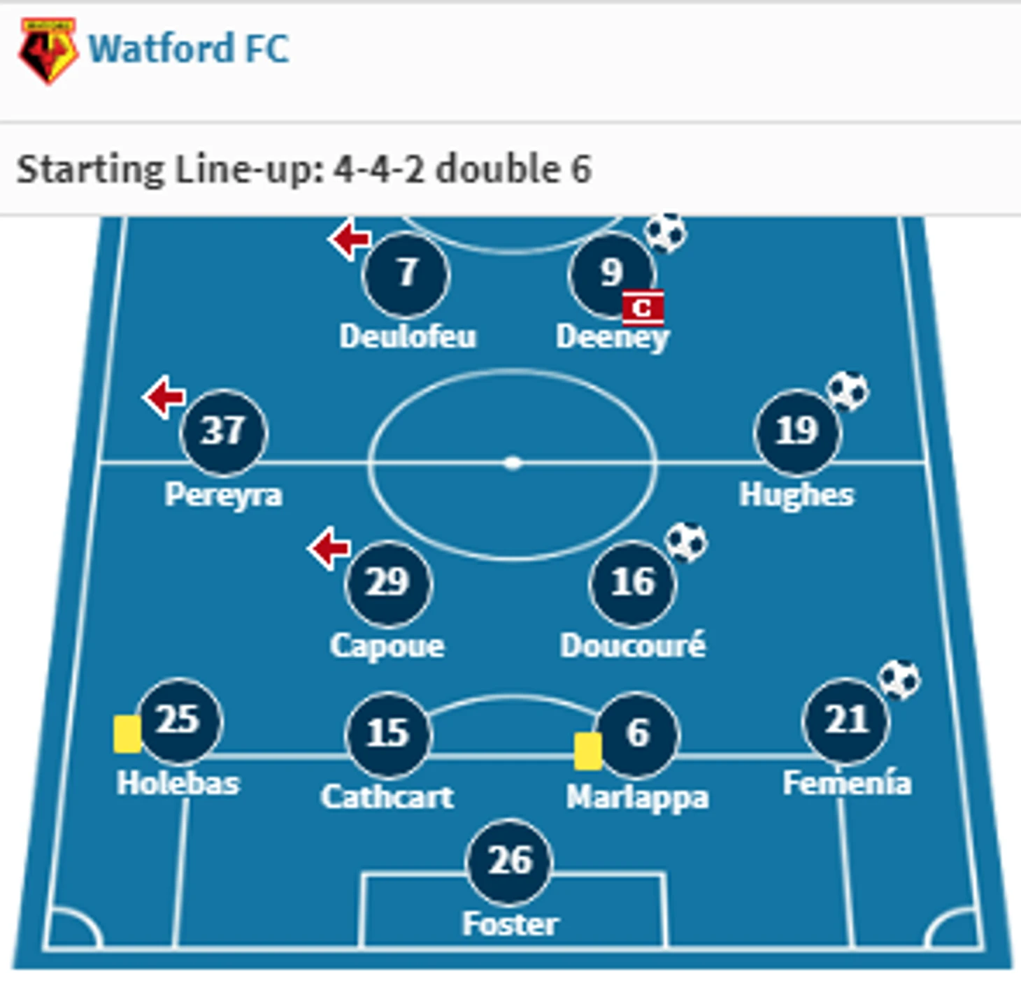 Уотфорд без сомнений сыграет по своей привычной схеме, Гарсия ее редко меняет, если в соперниках Ливерпуль или Сити. С составом все так же очень легко читается,