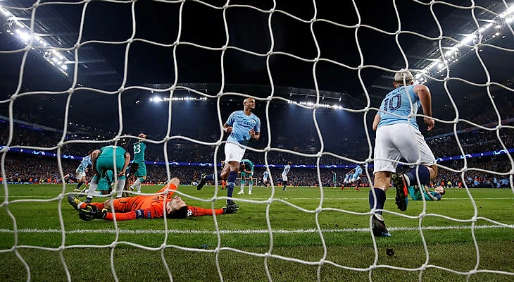 Дополнительное время, 4:3 в пользу «Сити», но этого недостаточно – нужно забивать еще. На 93-й минуте Эриксен обрезает, Агуэро врывается в штрафную и катит на Стерлинга – тот убирает защитника на замахе и пробивает Льориса.
