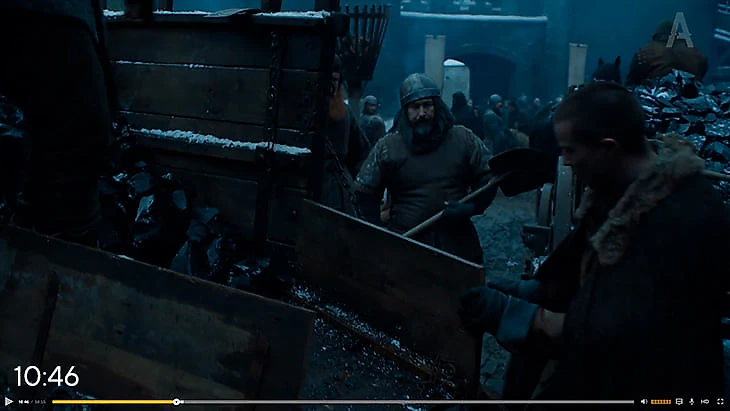10:46 – Игра престолов. Чуваки напряженно разгружают уголь.