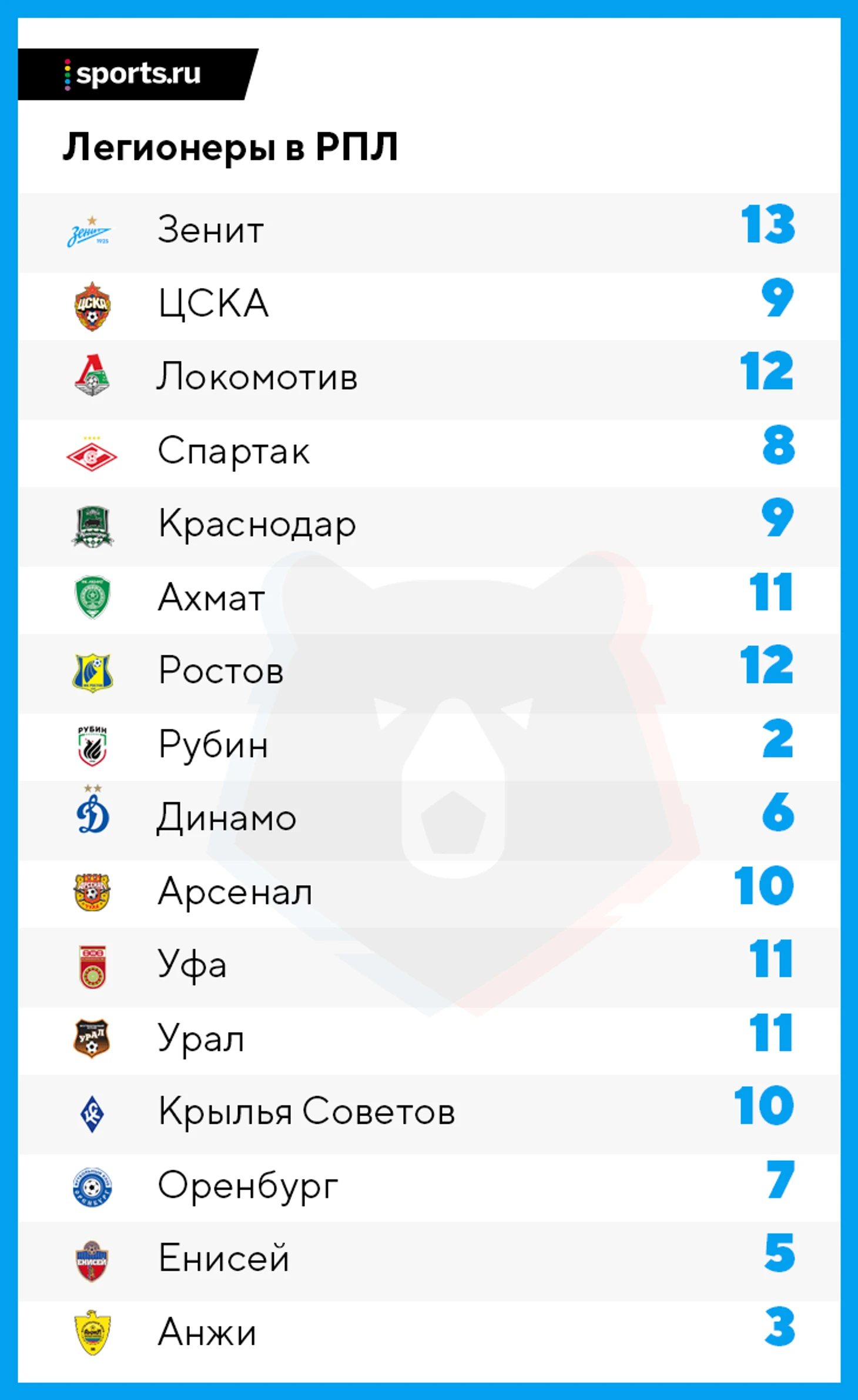 Затем возможное количество легионеров заявке падало с каждым месяцем. Интересно, что пока только шесть клубов РПЛ вписываются в правило 8+17.