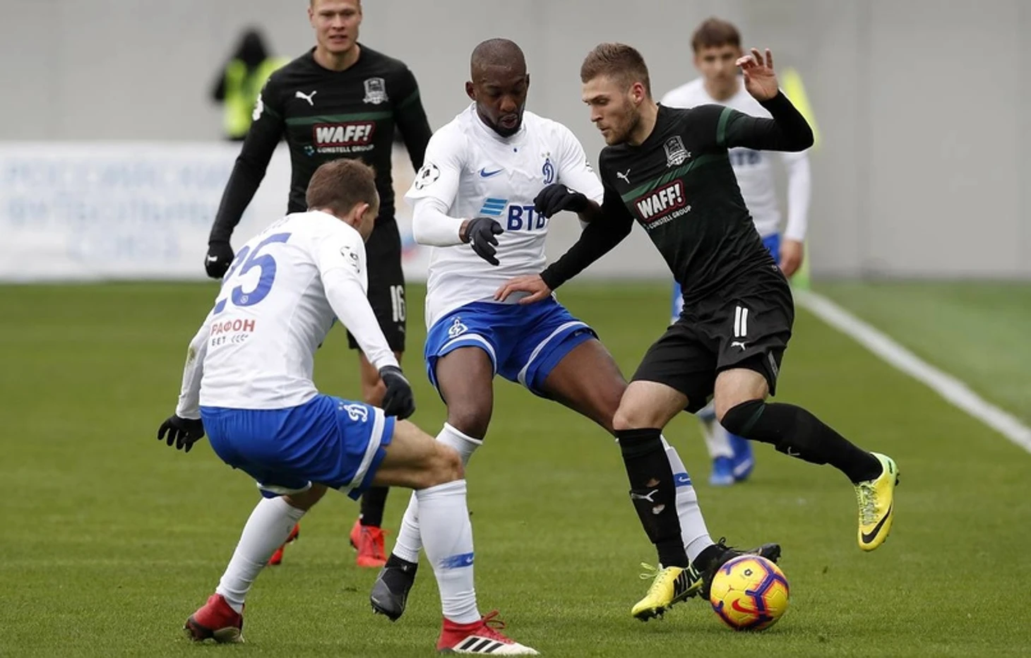 Действительно, в первом тайме «Краснодар» на поле присутствовал чисто номинально, сподобившись на один неопасный удар из пределов штрафной (и тот – после розыгрыша углового). Под давлением динамовцев, которые активно оборонялись в 4-4-2, «быки» неприлично часто ошибались в передачах, показав худшие для себя цифры в сезоне (73% точности).