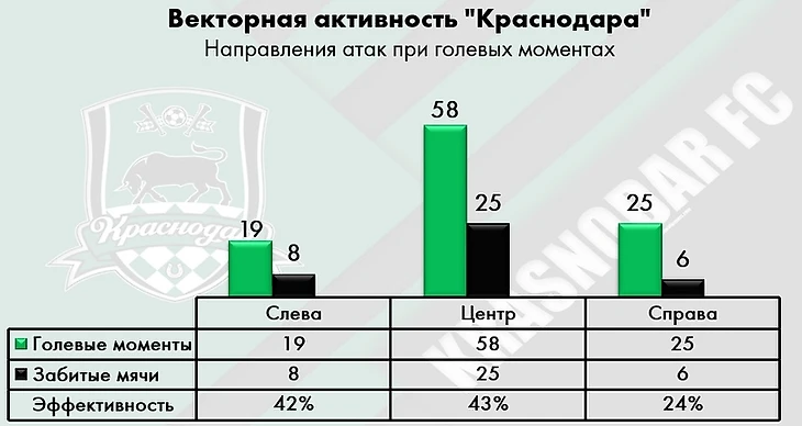 И с точки зрения логистики в финальной фазе краснодарцы в период работы Мусаева стали намного более разнообразны и не столь предсказуемы, как при Шалимове.