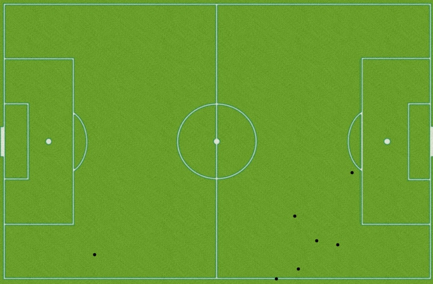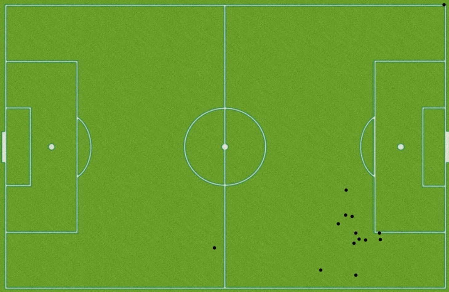 После смены позиции Ойеволе Сутормину пришлось стать хитрее: при позиционных атаках Адесойе поднимался по флангу практически к чужой штрафной, а Алексей был вынужден искать свободное пространство в центре. Карта передач Сутормина в штрафную после перевода Ойеволе четко показывает разницу в открываниях Алексея.