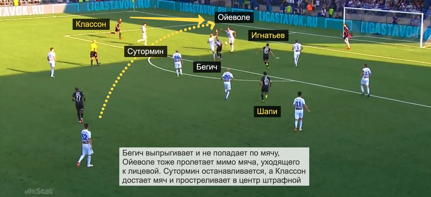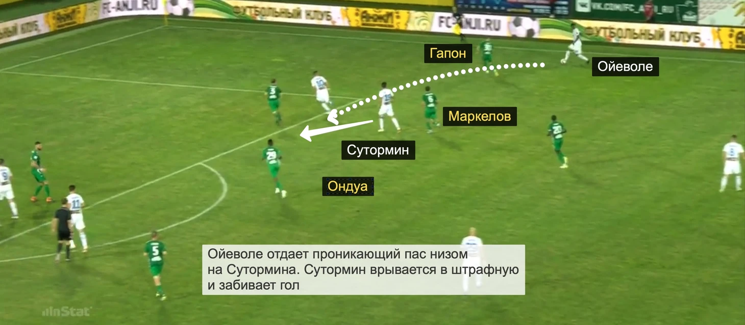 Гол в ворота «Анжи» в августе Сутормин забил именно после передачи Ойеволе, когда все расположились на привычных местах для одной из последних стадий позиционной атаки.